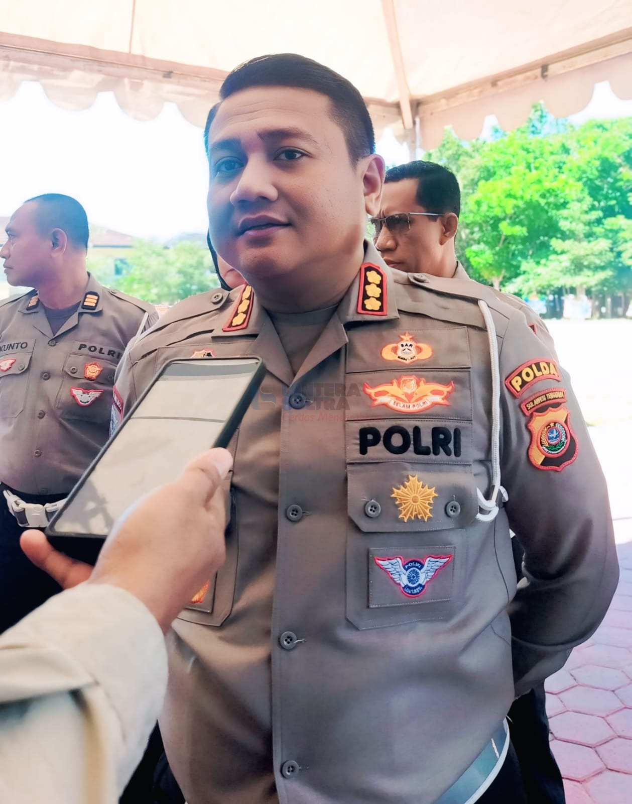 Dirlantas Polda Sultra, Kombes Pol. Dr Argo Wiyono saat menyampaikan keterangan kepada wartawan di sela-sela syukuran Hari Lalu Lintas Bhayangkara di Mapolda Sultra, Senin (22/9/2025) FOTO :MEILANI/LENTERASULTRA.COM