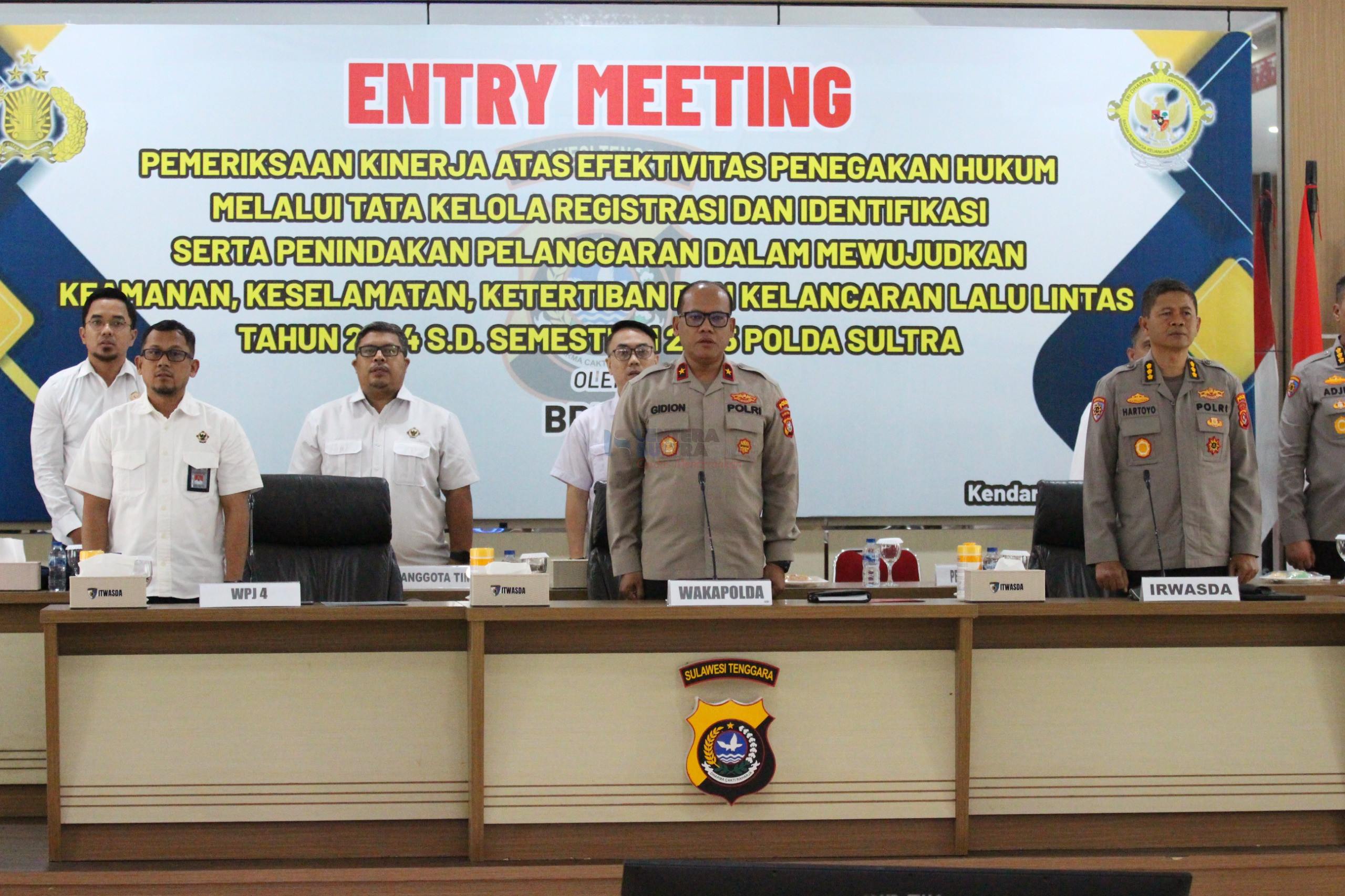 KENDARI, LENTERASULTRA.COM- Polda Sulawesi Tenggara (Sultra) melaksanakan entry meeting bersama Badan Pemeriksa Keuangan Republik Indonesia (BPK RI). Agendaya, terkait pemeriksaan kinerja atas efektivitas penegakan hukum melalui tata kelola registrasi dan identifikasi, serta penindakan pelanggaran dalam mewujudkan keamanan, keselamatan, ketertiban, dan kelancaran lalu lintas (Kamseltibcarlantas) tahun 2024 hingga semester I tahun 2025.