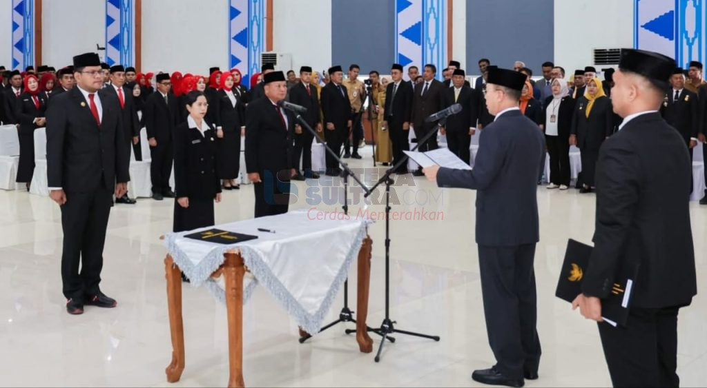 KENDARI, LENTERASULTRA.COM-Aula Bahteramas Kantor Gubernur Sultra, Senin (6/10) terlihat sangat padat. Ada agenda pelantikan terhadap ratusan orang pejabat di level eselon III dan IV di lingkup Pemprov Sultra. Dalam catatan yang ada, disebutkan bahwa yang mengikuti seremoni pengambilan sumpah itu berjumlah 270 orang pejabat terdiri dari 252 pejabat administrator dan 18 pejabat fungsional.
