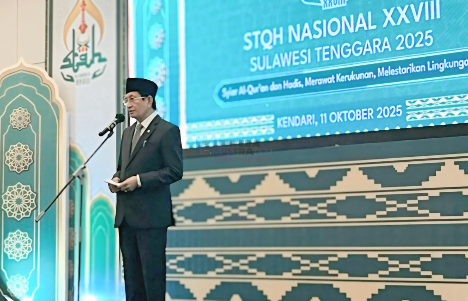 KENDARI, LENTERASULTRA.COM-Gagasan untuk menyatukan dua ajang besar syiar Islam, Musabaqah Tilawatil Qur’an (MTQ) dan Seleksi Tilawatil Qur’an dan Hadis (STQH), menemukan momentumnya. Menteri Agama RI, Nasaruddin Umar memberi signal dukungan terhadap ide tersebut. Alasannya, kedua ajang tersebut memiliki energi dan tujuan yang sama: memperkuat syiar Al-Qur’an.
