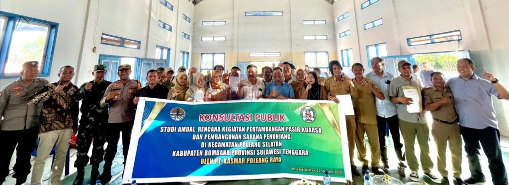 Konsultasi publik itu digelar Selasa (21/10/2025) di Aula Serbaguna, Kantor Camat Poleang Selatan dengan dihadiri oleh Camat Poleang Selatan dan Poleang Utara, pemerintah desa dan dusun lingkar tambang, perwakilan Dinas Lingkungan Hidup (DLH) Sultra dan DLHK Kabupaten Bombana, tokoh masyarakat, perwakilan pemuda, perwakilan aparat penegak hukum (APH), serta masyarakat sekitar wilayah operasi.