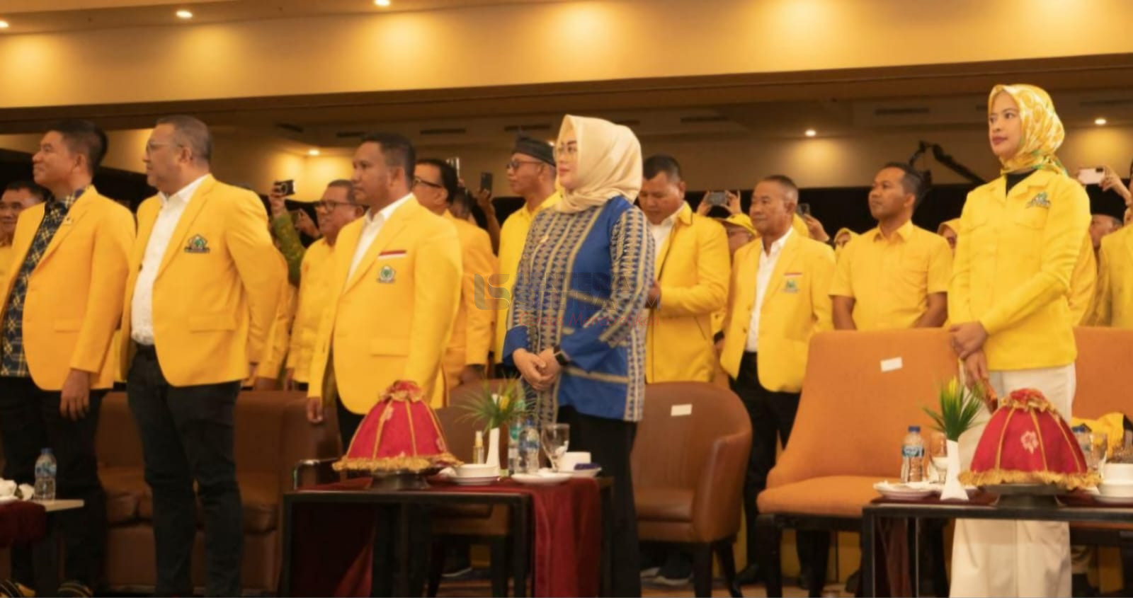Sucianti Suaib Saenong, saat menghadiri Musda Golkar Sultra, 2 November lalu. Ia duduk di deretan depan bersama Wali Kota Kendari, Siska Karina Imran dan La Ode Darwin (samping kiri Siska), bersama para petinggi Golkar lainnya. FOTO :IST